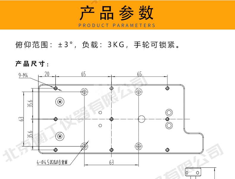 臺(tái)面尺寸:170X80 俯仰范圍:±3° 負(fù)載3公斤手輪可鎖緊