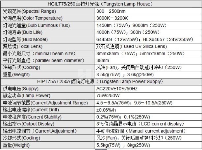 75W/250W鹵鎢燈光源及電源