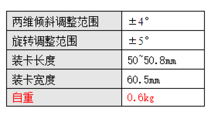 可裝卡兩種尺寸的平凸或平凹柱面鏡,柱面鏡可水平或豎直放置