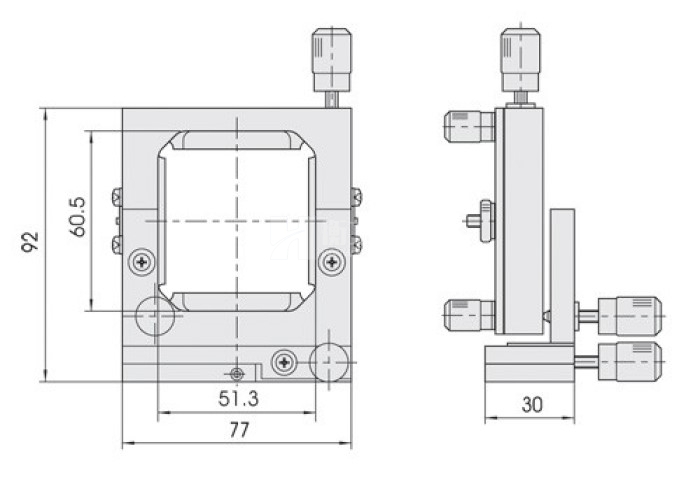 HGMMC251三維調整柱面鏡架特點:可將柱面鏡做兩維正交共面傾斜調整,可繞光軸旋轉調整,可裝卡兩種尺寸的平凸或平凹柱面鏡,柱面鏡可水平或豎直放置。