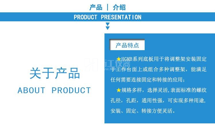 HGMB系列底板適用于將調(diào)整架安裝固定于工作臺面上或組合多種調(diào)整架,能滿足任何需要連接固定和轉(zhuǎn)接的應(yīng)用。